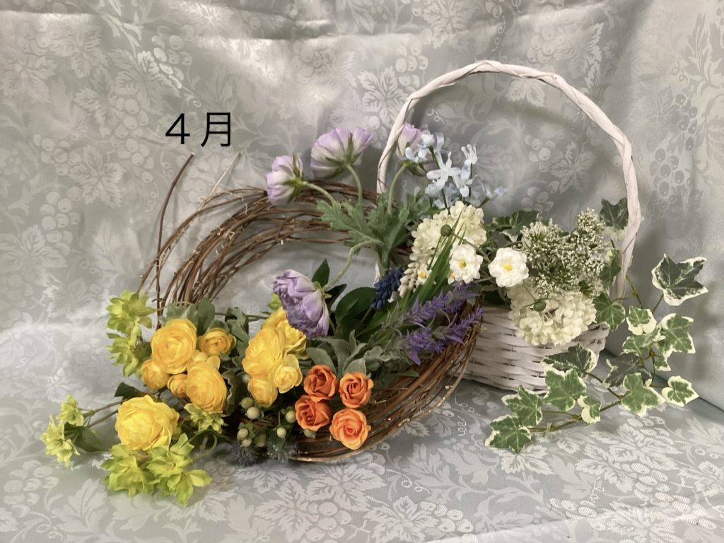 春の芽吹きの時期ですね♪植物達がみんなお日様に向かってのびのびしています♪今月は「植生」風のアレンジをデザインして下さいね♪お花達が上に向かって伸びていく感じに‥花材:ムスカリ2配色・ラナンキュラス3配色・ミニ薔薇2配色・ラベンダー🪻・レースフラワー・ブプレリュウム・アイビー・その他・リースかカゴを選んで頂きます🧺